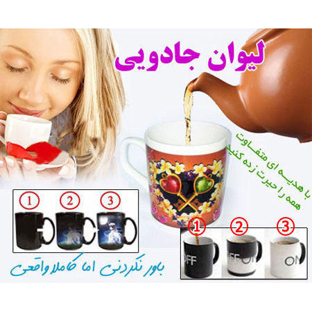 لیوان جادویی از سری تکنولوژی هایی می باشد توجه همه را به خود جلب می کند. شما تا بحال یک لیوان جادویی را مشاهده نکرده اید! این لیوان بسیار زیبا قادر است در چند لحظه شکل خود را به طور کامل تغییر دهد. لیوانی است که از جنس فوق حساس به حرارت ساخته شده است فقط کافی است در لیوان خود مقداری نوشیدنی داغ مانند آب، چای یا قهوه بریزید و آنگاه خواهید دید که این لیوان چگونه تصویر خود را تغییر می دهد. به محض خوردن نوشیدنی و سرد شدن آن ،  لیوان به وضعیت قبل از خود بر می گردد و مشکی می شود. فروشگاه میهن استور این محصول زیبا و استثنایی را به شما معرفی می کند. با خرید این محصول دوستان و اطرافیان خود را متعجب کنید.