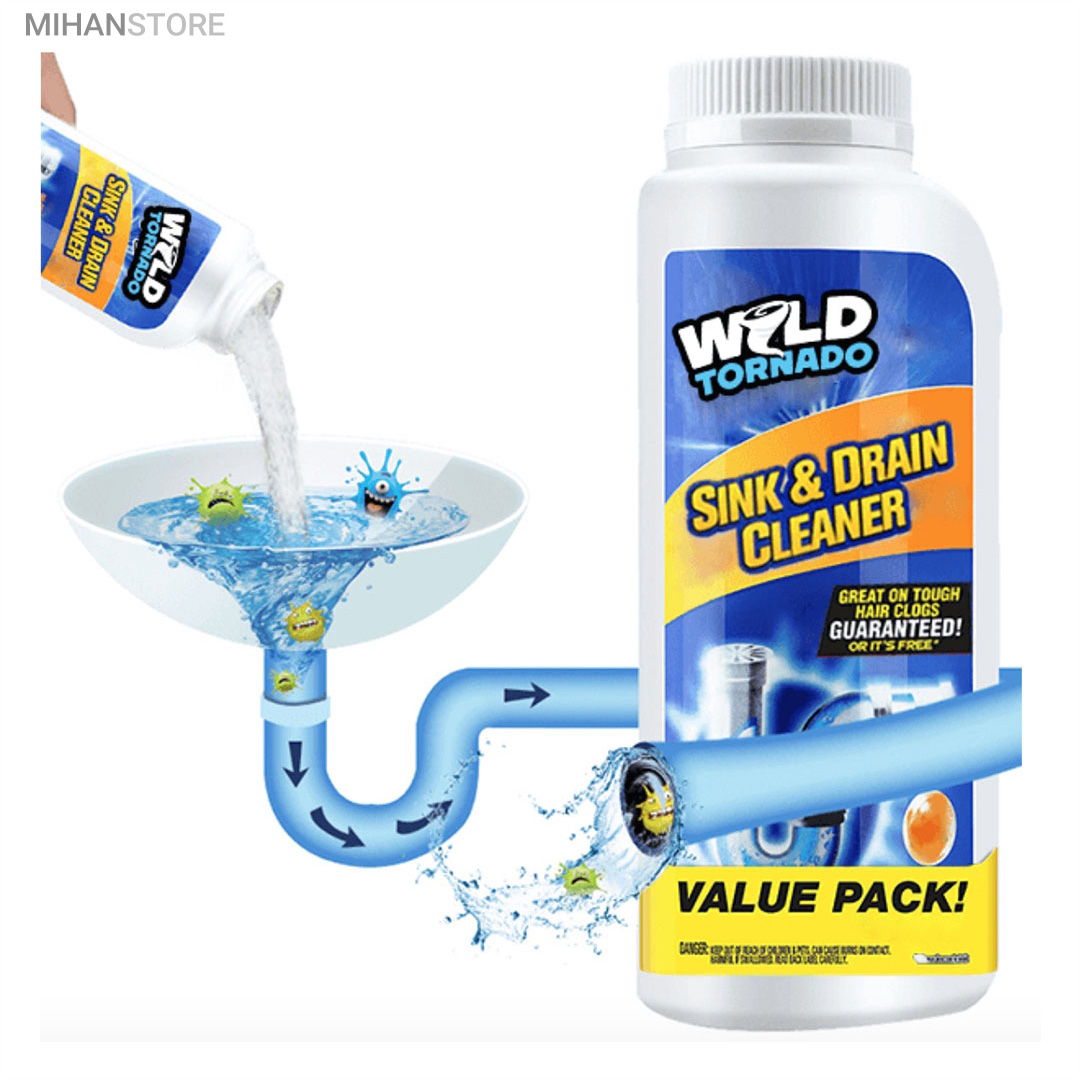 این محصول با قدرت فوق العاده و با فرمولاسیون جدید طی یک واکنش شیمیایی باعث باز شدن سریع لوله های فاضلاب، دستشویی، حمام و آشپزخانه و غیره شده و بوی نامطبوع را از بین می برد و هیچ گونه صدمه ای به لوله ها وارد نمی کند.با شست‌وشوی سبزی‌ها، میوه یا غذا از روی ظروف مقداری جرم درون سیستم فاضلاب و لوله‌کشی قرار خواهد گرفت. با توجه به اینکه جرم درون لوله‌ها بعد از مدتی باعث بسته شدن راه عبور آب خواهد شد، ممکن است با بسته شدن مسیر خروج آب و همچنین افزایش جرم، آسیب‌های متنوعی به سیستم فاضلاب یا حتی لوازم درون منزل زده شود. حتی در بعضی موارد پیش‌آمده که در اثر این مشکل، سقف یا دیوار نیز دچار آسیب شده است. پودر لوله‌بازکن تورنادو با وزن  250گرم برای از بین بردن جرم و مانع بسیار کارساز خواهد بود. پودر لوله‌بازکن تورنادو  را می‌توان با آب به‌صورت محلول استفاده کرد. پودر لوله‌بازکن را کمی درون سیستم فاضلاب ریخته و با اضافه شدن آب گرم به آن، می‌توان مسیر خروج آب را باز کرد. در ادامه با آب سرد می‌توان مسیر را به‌صورت کامل شست‌وشو داد.
