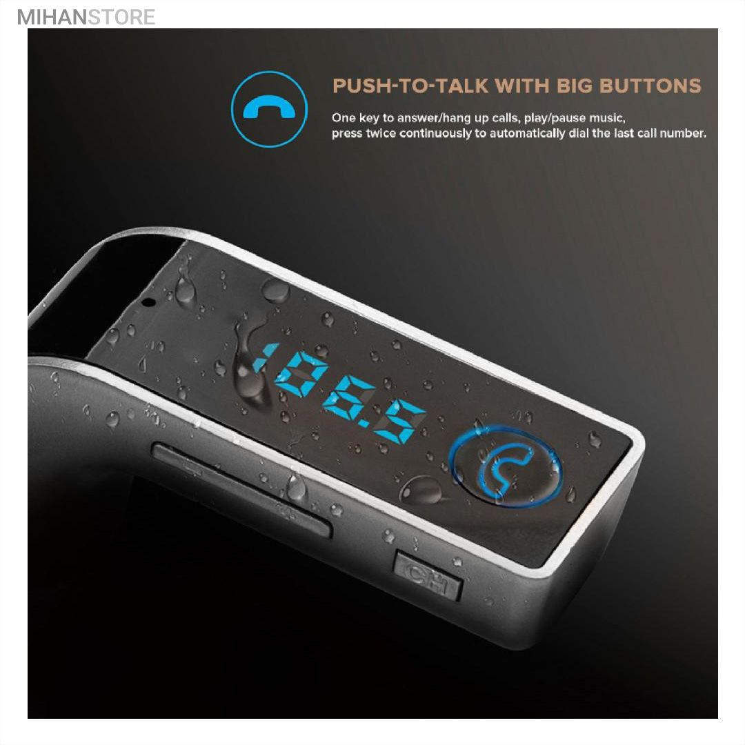 این محصول یک موزیک پلیر و شارژر فندکی است که علاوه بر شارژ تجهیزات گوناگون از طریق اتصال USB، امکان اتصال بیسیم به سیستم پخش خودرو و پخش موزیک های ذخیره شده در حافظۀ متصل شده به آن سیستم را داراست.این پلیر قابلیت پخش موزیک از روی فلش مموری های USB، کارت حافظه های MicroSD را نیز دارد. این موزیک پلیر همچنین قادر است از طریق بلوتوث به گوشی موبایل وصل شده و از طرف دیگر بوسیله بخش اف ام ترانسمیتر به سیستم پخش خودرو متصل شده و موزیک های موجود در حافظۀ گوشی موبایل را از رادیوی خودرو پخش کند. در صورت دریافت تماس ورودی در حین ارتباط بلوتوثی بین گوشی موبایل و سیستم پخش خودرو، موزیک به صورت خودکار قطع شده و تماس تلفنی در حالت اسپیکر برقرار خواهد شد؛ با پایان تماس تلفنی پخش موزیک به طور خودکار ادامه خواهد یافت.این موزیک پلیر از فرمت های صوتی MP3، WMA، MAV و FLV پشتیبانی کرده و دارای یک صفحۀ نمایش LED است. محصول فوق مجهز به فناوریCVC  بوده و توانایی حذف اِکو و نیز کاهش نویز را دارد.Car G7 یک FM player با گیرنده بلوتوثی میباشد که قابلیت پخش موزیک از طریق بلوتوث و USB را داراست و همچنین از رادیو FM نیز پشتیبانی میکند.