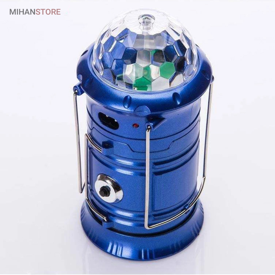 چراغ کمپینگ شارژی رقص نور دار قابل حمل به همراه رقص نور، محصولی با طراحی نوین و بسیار کاربردی است . این چراغ را میتوان تلفیقی از فانوس های قدیمی و چراغ قوه های جدید و رقص نور مدرن دانست .چراغ کمپینگ شارژی رقص نور دار، در واقع یک ابزار چند کاره است و میتواند به سادگی نیاز های شما در رابطه با نور را در مسافرت، پیک نیک و جشن های خانواگی و مواردی نظیر آن فراهم کند . شما میتوانید با کشیدن سر چراغ به سمت بالا (کشویی)، فانوس را روشن کنید و از آن برای تأمین نور محیط استفاده نمایید. چراغ اصلی فانوس دارای 6 چراغ ال ای دی است که در کنار هم نور قوه ای را ایجاد میکنید. همچنین در بالای این فانوس یک شیشه منشوری وجود دارد که هنگام روشن کردن با چرخش و نور پردازی فضای دل انگیزی را برای شما به وجود میآورد. این محصول خرید خوبی برای استفاده در کمپینگ و طبیعتگردی خواهد بود.ورودی برق روی دستگاه بوسیله سیم همراه به برق وصل شده و چراغ را شارژ مینماید تا بتوانید به صورت بی سیم از چراغ استفاده نمایید.خروجی یو اس بی روی دستگاه نیز برای شارژ تلفن همراه شما تعبیه شده است و برای شارژ کردن گوشی موبایلتان است.جنس بدنهی این محصول سبک و کم حجم، جنس بدنه از ABS + PC، محکم و بادوام است که بهسادگی آسیب نمیبیند و این امکان را به شما میدهد تا مدتزمان زیادی بهصورت مستمر از آن استفاده کنید. این محصول وزن قابلقبولی دارد و شما میتوانید بهراحتی آن را حمل کنید و در سفرها به همراه داشته باشید.