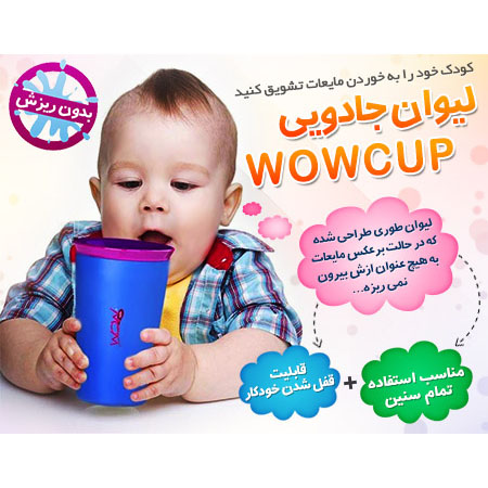 لیوان Wow Cup را می توانید به صورت 360 درجه بدون آن که قطره ای از مایع درون آن، به بیرون بریزد بچرخانید. مکانیسم نوآورانه لیوان با درپوشی دولایه که تنها با فشردن لب روی لایه بیرونی درپوش لیوان، مایع خارج می‌شود که این امر اجازه هدر رفتن و ریختن نوشیدنی را نمی‌دهد. از دیگر ویژگی های این لیوان دارا بودن تشتک سر پلاستیکی می باشد که مانع از آسیب دیدن و کج شدن دندان های کودک شما می شود. همچنین نوع طراحی و رنگ های شاد این محصول کودک شما را تشویق به نوشیدن مایعات خواهد کرد.